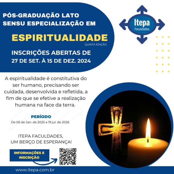 A Itepa Faculdades abriu as inscrições para a Pós-Graduação em Espiritualidade. O curso destina-se a: 1) Graduados em Teologia, Filosofia,