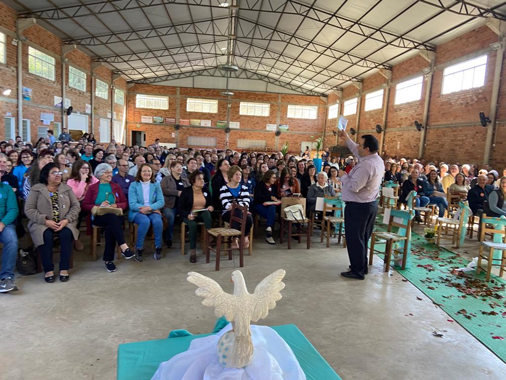 No último sábado, 17 de setembro, a Área Pastoral de Marau realizou o Retiro de Ministros, com a participação de aproximadamente 400 ministros. O encontro, com o tema “Qual minha missão?”, teve início às 08h30, com animação, oração, formação e adoração, onde os ministros tiveram as mãos ungidas com o óleo perfumado, para que todas tenham o mesmo aroma do perfume de Jesus.