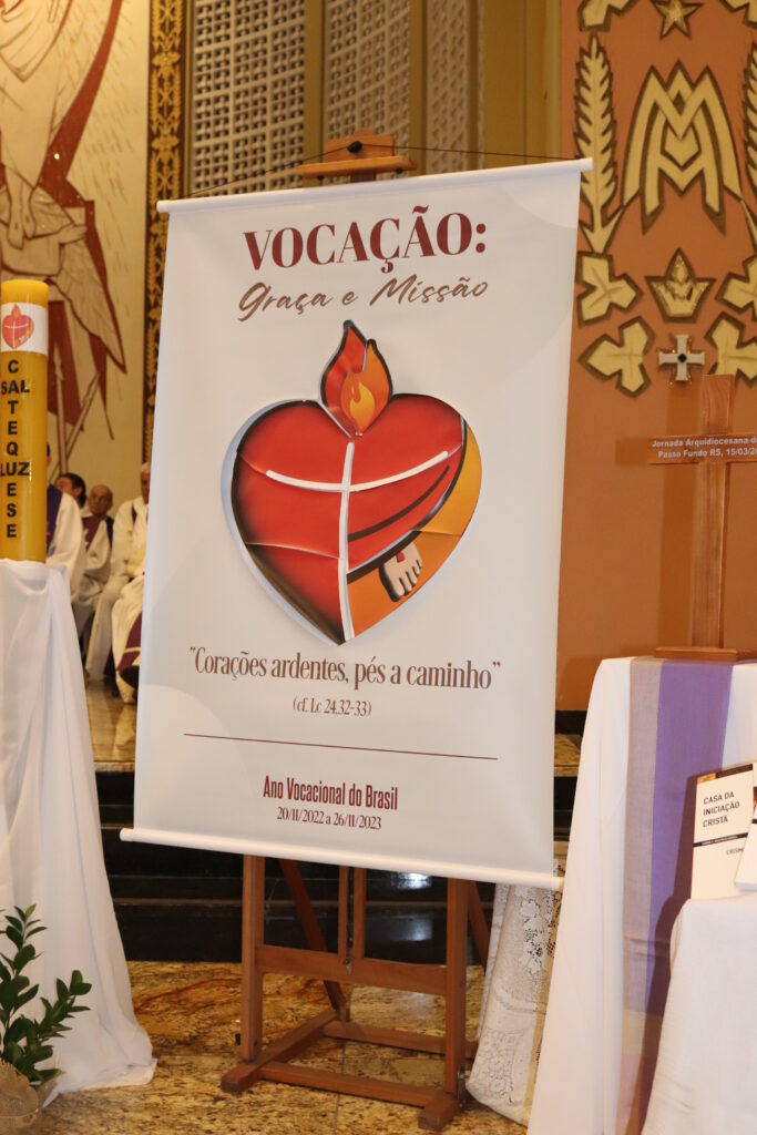 Durante a Celebração, catequistas representando as nove áreas pastorais, fixaram no painel partes do coração, compondo assim a logomarca e ícone do 3º Ano Vocacional do Brasil. O gesto realizado quis ser sinal da comunhão e da unidade eclesial, unidade essa que aquece o coração e faz caminhar como Igreja em saída, com espírito sinodal, cada um fazendo a sua parte na caminhada catequética de IVC e no processo de evangelização.