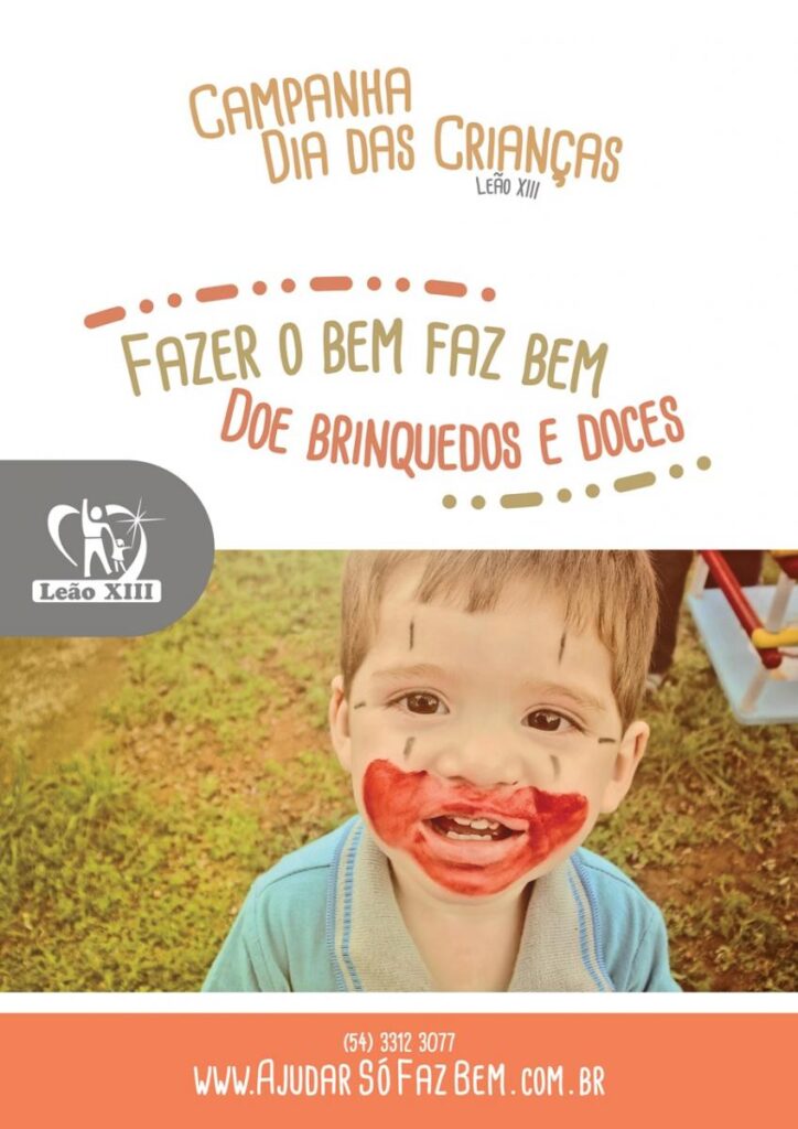 A Assistência Social Diocesana Leão XIII já colocou em ação a sua campanha “Fazer o Bem Faz Bem”, que busca arrecadar brinquedos e doces para fazer a festa do Dia das Crianças de seus atendidos. Atualmente, mais de 700 crianças em situação de vulnerabilidade socioeconômica e de bairros periféricos da cidade são beneficiadas pela instituição em seus núcleos de atendimento, que envolvem a Educação Infantil e Centros de Juventude. “Gostaríamos que toda a comunidade fizesse a sua parte para tornar mais belo este dia. Um pequenino gesto pode contribuir muito para que uma criança seja mais feliz. Uma simples ação pode fazer renascer o brilho que ela possui”, afirma a coordenadora do CESP Leão XIII e promotora da campanha, Adriana Severo dos Santos.