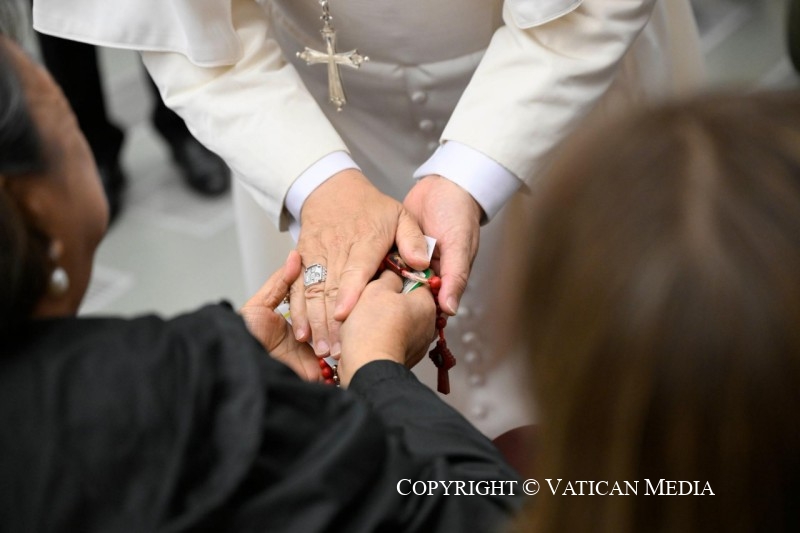 Amados irmãos e irmãs, para Deus, descer não é uma derrota, mas o cumprimento do seu amor. Não é um fracasso, mas o caminho através do qual Ele mostra que nenhum lugar é demasiado distante, nenhum coração é demasiado fechado, nenhum sepulcro é demasiado selado para o seu amor. É isto que nos consola, é isto que nos sustenta. E se às vezes nos parece que tocamos o fundo, lembremo-nos: este é o lugar a partir do qual Deus é capaz de começar uma nova criação. Uma criação feita de pessoas reerguidas, de corações perdoados, de lágrimas enxugadas. O Sábado Santo é o abraço silencioso com o qual Cristo apresenta toda a criação ao Pai para voltar a inseri-la no seu desígnio de salvação.
