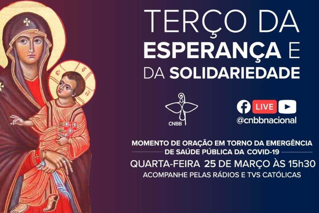 A Conferência Nacional dos Bispos do Brasil (CNBB) convida a todos os fieis no Brasil para mais uma vez formar uma corrente nacional amanhã, 25 de março, às 15h30, com a oração do Terço da Esperança e da Solidariedade, que será transmitido pelas tvs de inspiração católicas do país, emissoras de rádio e pelas páginas da Conferência no facebook e no youtube.