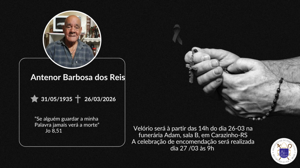 Com pesar, a Arquidiocese de Passo Fundo comunica o falecimento do senhor Antenor Barbosa dos Reis, carinhosamente conhecido como seu Manga, pai do Pe. Ari Antônio dos Reis, ocorrido aos 90 anos de idade.