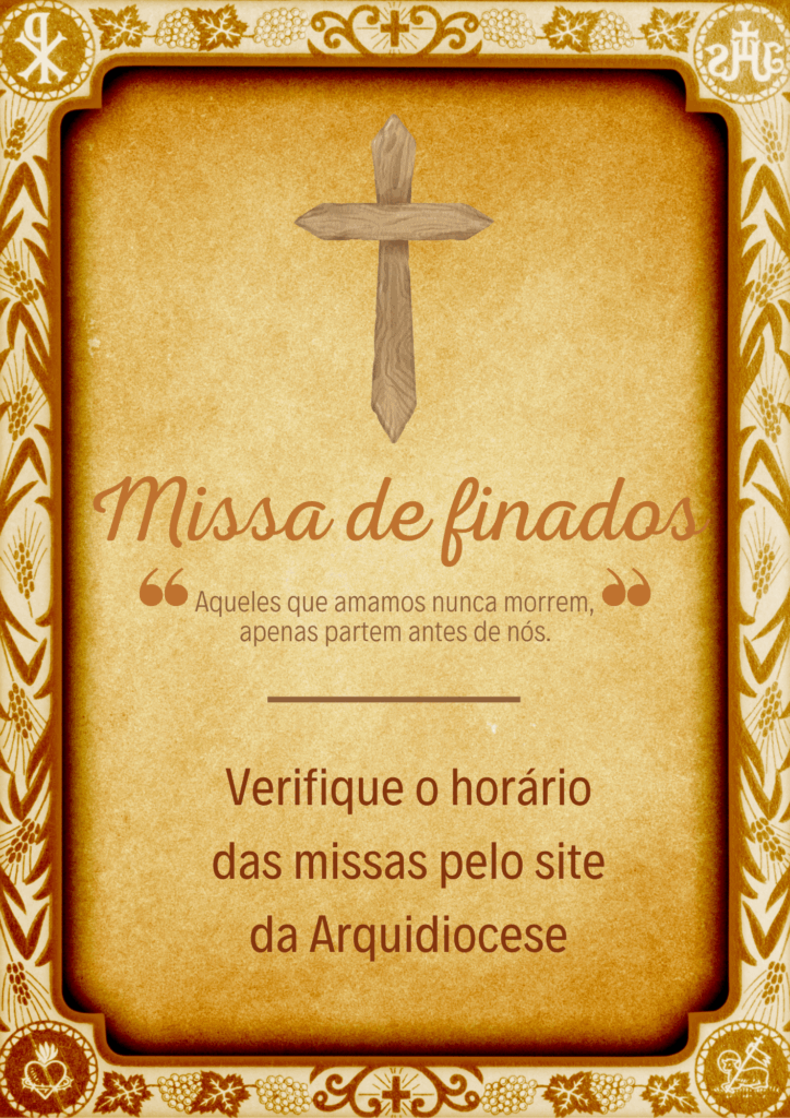 VEJA OS HORÁRIOS DAS MISSAS DE FINADOS NA ARQUIDIOCESE