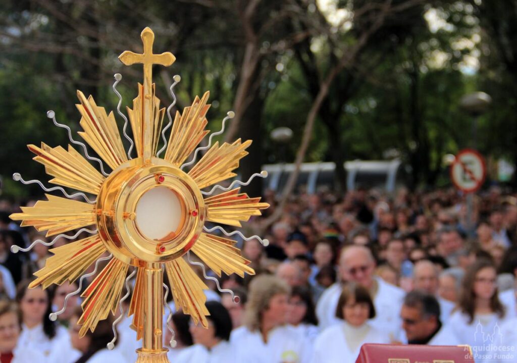 Celebração que recorda a doação e o sacrifício de Jesus Cristo e convida os fiéis de toda a Igreja Católica para a partilha: a solenidade de Corpus Christi, que celebra o Corpo e o Sangue de Cristo, envolve as 53 paróquias da Arquidiocese de Passo Fundo nesta quinta-feira e faz memória ao sacrifício de Jesus Cristo ao se doar através da Eucaristia. Na Catedral Nossa Senhora Aparecida, a missa acontece às 15h e, depois, a comunidade é convidada para participar da tradicional procissão ao redor da Praça Marechal Floriano – onde os grupos de movimentos e pastorais da paróquia recebem a bênção do Santíssimo Sacramento.