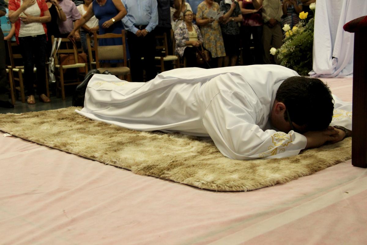Durante a celebração, Tiago recebeu a túnica, a estola e o Livro dos Evangelhos – símbolos e instrumentos importantes em sua caminhada vocacional. Ainda, durante o rito de ordenação, se colocou diante do arcebispo e reafirmou o propósito de vivenciar a missão. Como sinal de entrega e disposição à Igreja, o novo diácono prostrou-se diante das orações da comunidade. Depois, em sua fala, agradeceu a família, a comunidade e aos formadores pelo apoio recebido. Falou, também, sobre a misericórdia – proposta assumida por ele. “O meu lema chama à misericórdia. E o amor de Jesus apresenta revela o Pai das Misericórdias. Misericórdia é uma ação permanente de sair de si mesmo e ir ao encontro do outro. Eu compreendo a misericórdia como um gesto de profundo amor – não para encontrar o outro e ficar estacionado na miséria, mas para fazê-lo levantar e ir ao encontro de Deus”, colocou. Por fim, Tiago pediu que a comunidade também reze por ele. “Nesse dia de alegria, o Senhor me chama para ser misericordioso e agradeço a Deus por provocar o encontro com a sua misericórdia. Rezem por mim”, concluiu.