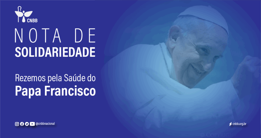 “A Conferência Nacional dos Bispos do Brasil se une a todas as pessoas que, nestes dias, se encontram em oração pela saúde do Papa Francisco. Que a Virgem Mãe Aparecida interceda junto ao Bom Deus para que fortaleça sempre mais o Santo Padre na condução da Igreja”, diz a Nota de Solidariedade emitida pela CNBB.