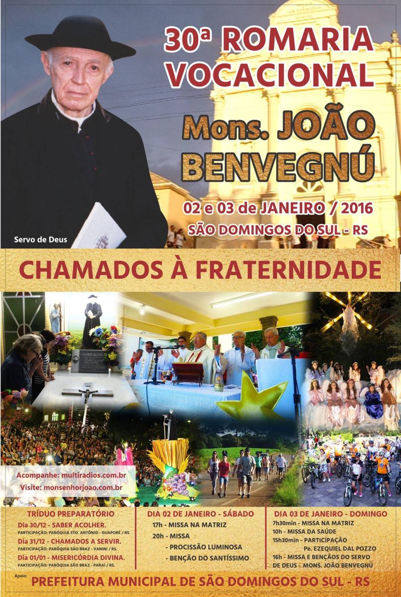 Animada pela esperança de beatificação do Monsenhor João Benvegnú, a paróquia de São Domingos do Sul se prepara para a 30ª Romaria Vocacional em honra ao sacerdote, conhecido pelo empenho na evangelização, motivação para vocações sacerdotais e religiosas, testemunho de vida e por suas graciosas bênçãos.
