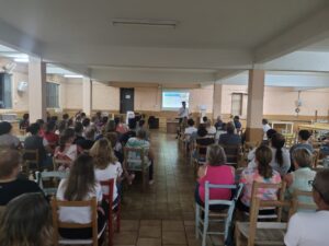 Na sequência, Dom Rodolfo apresentou de modo geral o material que está sendo usado na Arquidiocese ‘Casa da Iniciação Cristã’, organizado pelo Dom Leomar Brustolin. Salientou a importância de ter um material organizado e orgânico, que oferece um itinerário completo nos seus quatro volumes. A proposta tem como fundamento a Palavra de Deus e a Tradição da Igreja e oferece um caminho que ajuda a introduzir os catequizandos na vida cristã. Destacou ainda que Catequese e Liturgia caminham junto. A catequese é ritual e por isso vivencial, não é palestra ou aula. Nesse sentido, o ambiente onde acontece a catequese deve ser sóbrio e bonito, capaz de favorecer a vivência do rito. Destacar a mesa da Palavra e a mesa da partilha, favorecendo uma catequese mistagógica que conduz ao Mistério. Para que a catequese seja bem vivenciada, é fundamental a preparação por parte do catequista. Isso pede estudo, preparação, oração pessoal para poder oferecer aos catequizandos uma catequese orgânica e sólida nos conteúdos e nas vivências.