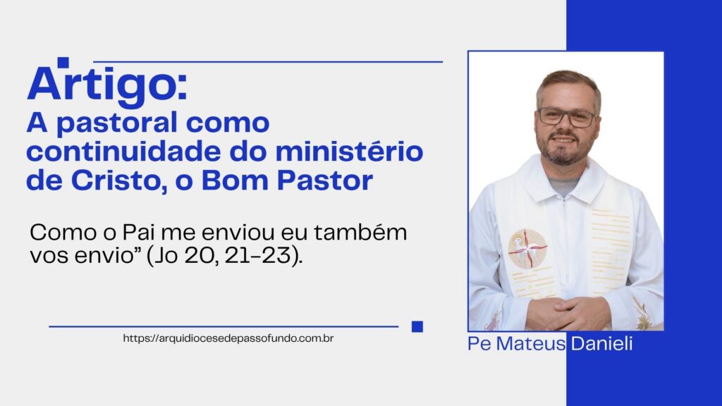 É importante ressaltar que toda a dimensão evangelizadora da Igreja deriva justamente Dele, do Cristo, Bom Pastor. Tudo o que é realizado na perspectiva pastoral da Igreja tem sua gênese no ministério pastoral de Jesus, uma continuação do seu pastoreio. Como Ele diz no domingo da Páscoa: “recebei o Espirito Santo. Como o Pai me enviou eu também vos envio” (Jo 20, 21-23).