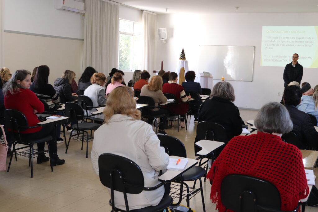 Tendo presente que os ritos sempre envolvem os 5 sentidos da pessoa, Pe. Joelmar recordou que tudo na liturgia e nos encontros de catequese comunica. Com isso, se recorda que os rito também são comunicação: comunicam, através de um gesto ou palavra, uma mensagem e uma ação de Deus. Percorrendo algumas referências da Constituição Dogmática Sacrosanctum Concilium e da Carta Apostólica Desidério Desideravi do Papa Francisco, o assessor fundamentou a importância da “participação ativa, consciente, plena e frutuosa” dos fiéis nas celebrações, de modo que a catequese contribuiu para que isto aconteça.