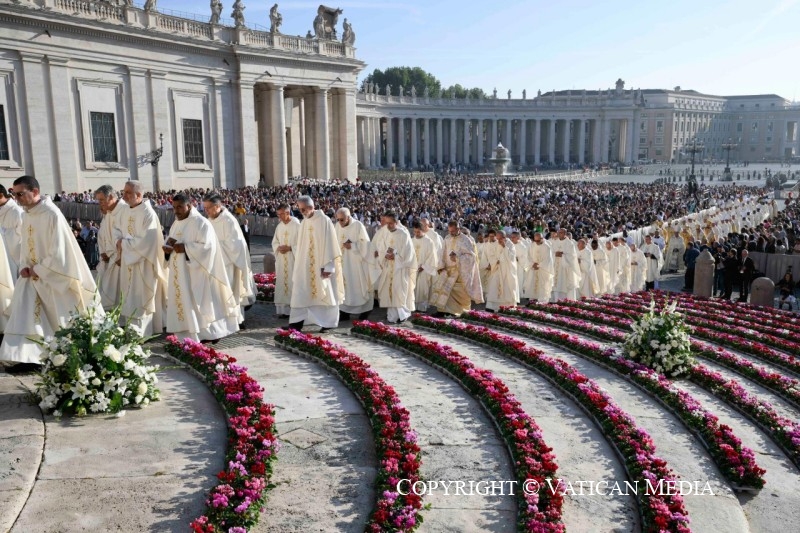 E se o Povo santo de Deus com os seus pastores, de todas as partes do mundo, nutre anseios, esperanças e até qualquer receio sobre o Sínodo que iniciámos, recordemos mais uma vez de que não se trata duma reunião política, mas duma convocação no Espírito; não se trata dum parlamento polarizado, mas dum lugar de graça e comunhão. Depois, como sucede muitas vezes, o Espírito Santo rompe as nossas expetativas para criar algo de novo que supera as nossas previsões e as nossas negatividades. Talvez possa dizer que os momentos mais frutuosos no Sínodo são os momentos de oração, e também o ambiente de oração, graças ao qual age em nós o Senhor. Abramo-nos a Ele e invoquemo-Lo: Ele é o protagonista, o Espírito Santo. Deixemos que seja Ele o protagonista do Sínodo! E com Ele caminhemos, com confiança e alegria.