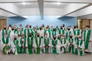 Marcando a abertura do ano letivo da Itepa Faculdades, os bispos celebraram com o corpo docente e alunos da instituição uma Missa. Na ocasião, Dom Irineu Gassen ressaltou de forma especial a importância da Itepa para a formação de tantos padres, religiosos, religiosas, leigos e leigas, frisando a alegria de anunciar o Evangelho na vida diária. O bispo reafirmou as mensagens que as leituras querem deixar, o seguimento de Jesus de Nazaré que faz com que a Palavra que vem do alto desça ao chão e se torne carne e alimento na vida do povo. Fazendo referência à oração do Pai Nosso, realçou: “O perdão é o rosto que Deus deseja nos dar. Ele se faz perdão, mas deixa a cada um de nós a medida como será vivenciado este gesto”.