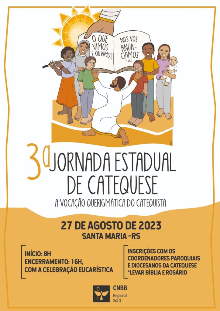 No coração do Rio Grande, a cidade de Santa Maria se prepara para acolher no próximo dia 27 de agosto a 3ª Jornada Estadual de Catequese do Regional Sul 3. O encontro pretende reunir catequistas de todo o Rio Grande do Sul em uma grande celebração, que nesta terceira edição provoca os e as catequistas a refletirem o tema “A vocação querigmática do catequista”.
