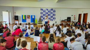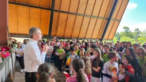 Após a Missa, os participantes: coroinhas, acólitos e coordenadores, partilharam um lanche, antes do momento formativo e celebrativo no salão com a Irmã Cristina Bisolo, com o tema: “Coroinha Servidor(a) da Esperança, ancorados em Jesus Cristo!”