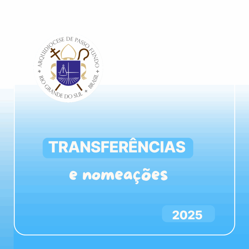 Comunicamos as nomeações e transferências da Arquidiocese de Passo Fundo.
