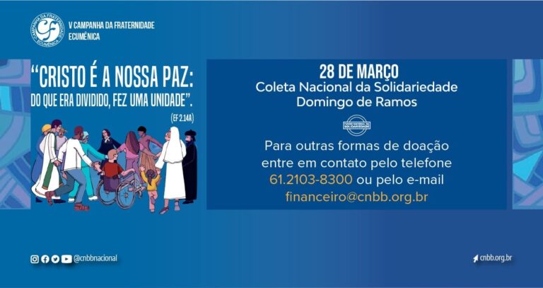 O bispo auxiliar do Rio de Janeiro e secretário-geral da Conferência Nacional dos Bispos do Brasil (CNBB), dom Joel Potella Amado, convidou os católicos e cristãos à doação na Coleta da Solidariedade, no próximo dia 28 de março, Domingo de Ramos, nas comunidades e paróquias de todo o Brasil e também nas Igrejas membros do […]