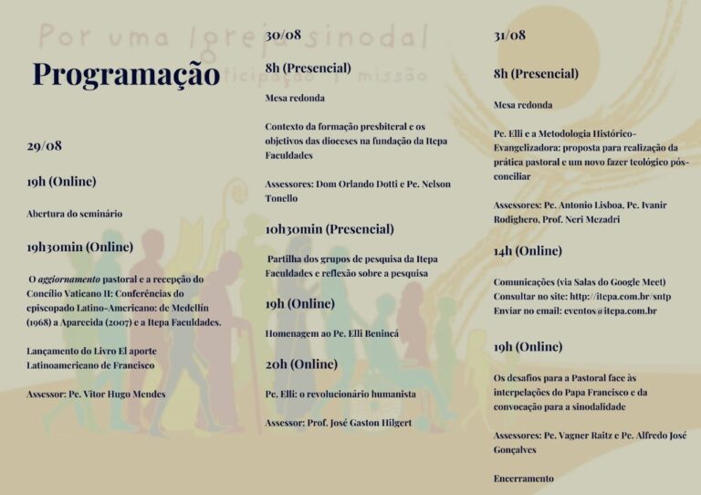 Na comemoração dos seus 40 anos, a Faculdade de Teologia e Ciências Humanas, Itepa Faculdades, de Passo Fundo, promove o I Seminário Nacional de Teologia Pastoral, que refletirá sobre as Leituras Histórico-Teológicas da Metodologia Pastoral: perspectivas para o aggiornamento no século XXI. O evento acontecerá de forma híbrida, com momentos de presença on-line e […]