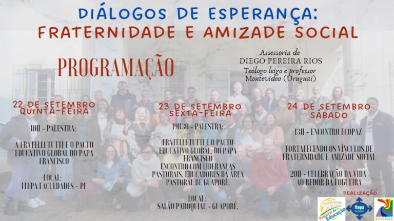 Em continuidade à campanha da Fraternidade de 2022, a Pastoral da Educação e Cultura, em parceria com a ECOPAZ e Itepa Faculdades, está promovendo o evento “Diálogos de Esperança: fraternidade e amizade social”. A atividade terá início na quinta-feira, 22 de setembro, e contará com a assessoria do teólogo leigo e professor uruguaio Diego Pereira […]