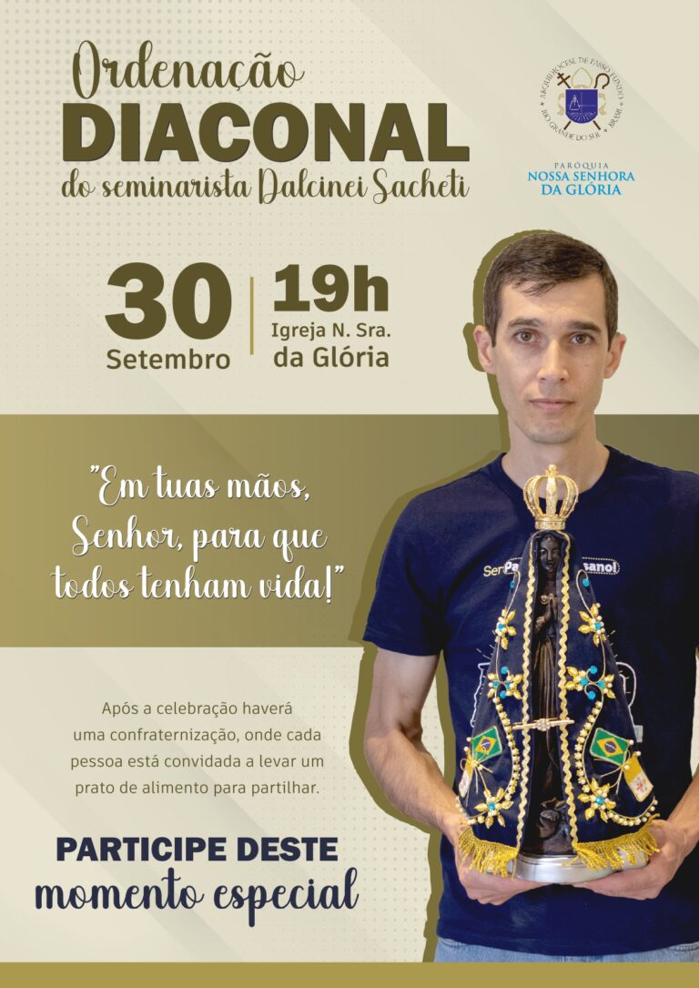 Com o lema “Em tuas mãos, Senhor, para que todos tenham vida”, tirado do Evangelho de João (10,10), a Arquidiocese de Passo Fundo acolhe a Ordenação Diaconal do seminarista Dalcinei Sacheti, nesta sexta-feira, dia 30 de setembro, às 19h, na paróquia Nossa Senhora da Glória, em Carazinho. Segundo Dalcinei, a escolha do tema foi feita […]