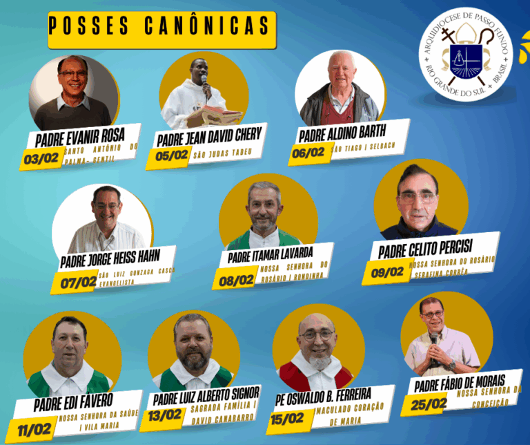 Estamos vivenciando um momento de Renovação em algumas das Paróquias de nossa Arquidiocese. Por isso apresentamos os novos Párocos que assumem sua nova função. São eles: 1. 18/01 – 19h30 – Frei Ivar Brunetto – Paróquia Santo Antônio – Camargo 2. 03/02 – 19h – Pe. Evanir Rosa – Paróquias Santo Antônio – […]