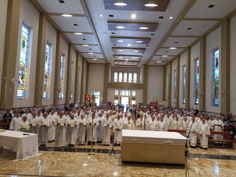 Na Quinta-feira Santa (28), a Igreja celebrou a “Missa do Crisma”. Esta celebração foi marcada por dois momentos significativos: a renovação das promessas sacerdotais e a bênção dos Santos Óleos. RENOVAÇÃO DAS PROMESSAS SACERDOTAIS No primeiro momento, em sinal de plena comunhão com o seu Bispo e a Igreja, os presbíteros renovaram as […]