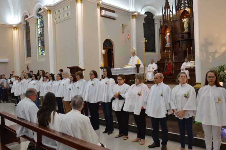 “O céu começa na Eucaristia”, assegura o Papa Francisco. Cientes disso, na noite da quarta-feira (25 de outubro), a Igreja Matriz Cristo Rei lotou para a missa solene de nomeação de outros 23 novos ministros e reafirmação dos que já atuavam no exercício do Ministério Extraordinário da Comunhão. Apesar de não haver um número exato, […]