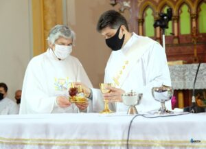 Na sequência, o novo pároco realizou a renovação das promessas sacerdotais e recebeu as chaves da Igreja e do sacrário, o óleo batismal e a estola sacerdotal, sinais de sua vocação e missão na paróquia.