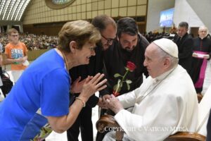 A oração a favor dos seus amigos reapresenta-se continuamente na vida de Jesus. Os Apóstolos por vezes tornam-se um motivo de preocupação para ele, mas Jesus, dado que os recebeu do Pai, depois da oração, leva-os no seu coração, até com os seus erros, inclusive as suas quedas. Em tudo isto descobrimos como Jesus foi mestre e amigo, sempre pronto a esperar pacientemente a conversão do discípulo. O ponto mais alto desta espera paciente é a “tela” de amor que Jesus tece à volta de Pedro. Na Última Ceia ele diz-lhe: «Simão, Simão olha que Satanás vos reclamou para vos joeirar como o trigo. Mas Eu roguei por ti, a fim de que a tua fé não desfaleça. E tu, uma vez convertido, fortalece os teus irmãos» (Lc 22, 31-32). Impressiona, no tempo da tentação, saber que naquele momento o amor de Jesus não cessa – “mas padre, se estou em pecado mortal, existe o amor de Jesus? – Sim – E Jesus continua a rezar por mim? – Sim – Mas se pratiquei coisas más e muitos pecados, será que Jesus continua a amar-me? – Sim”. O amor e a oração de Jesus por cada um de nós não cessam, aliás, tornam-se mais intensos e nós estamos no centro da sua oração! Devemos sempre recordar isto: Jesus está a rezar por mim, está a rezar agora perante o Pai e mostra-lhe as feridas que carregou consigo, para que o Pai possa ver o preço da nossa salvação, eis o amor que Ele nutre por nós. Mas, agora, cada um de nós pense: neste momento Jesus está a rezar por mim? Sim. Esta é uma grande certeza que devemos ter.