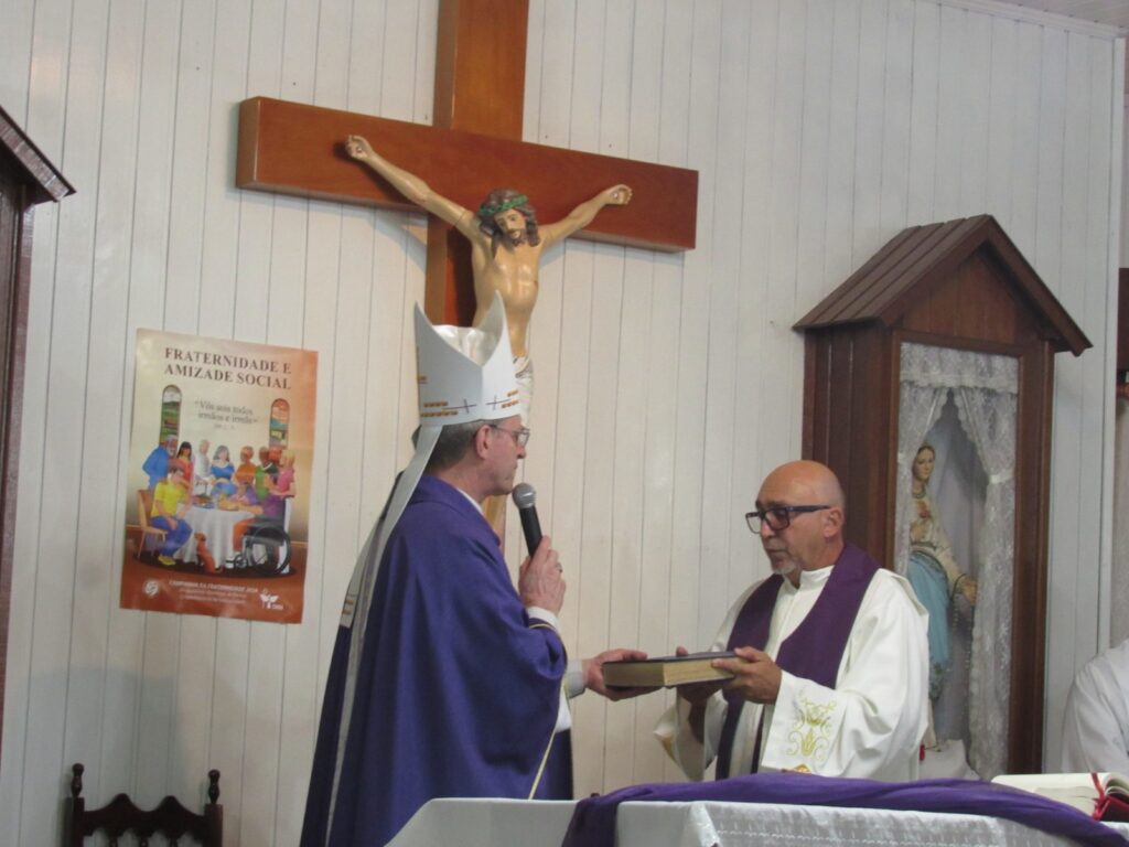 Na celebração eucarística realizada na quinta-feira, dia 15 de fevereiro, Dom Rodolfo Luiz Weber, Arcebispo de Passo Fundo, deu posse ao Padre Oswaldo Baptista Ferreira Jr. como novo Pároco da Paróquia Imaculado Coração de Maria de Victor Graeff.