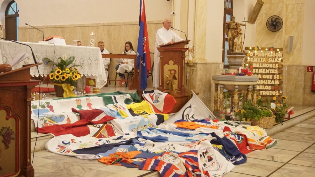 Coordenada pela Pastoral da Educação e presidida pelo arcebispo Dom Rodolfo Luís Weber, a Missa contou com mais de cinquenta representações de escolas de toda a região, e também de São Domingos do Sul. Cada educandário trouxe seus símbolos de identificação: bandeiras, banners, camisetas, etc. que foram ofertadas e abençoadas. Além disso, cada professor pode apresentar as plantinhas de girassóis que também foram ofertadas e partilhadas. Também foram apresentadas as propostas do Pacto Educativo Global, do Papa Francisco. A celebração foi animada com o coral das crianças, jovens e pais do projeto “vozes em canto”, da Paróquia de Guaporé, apoiado pelo Fundo de Solidariedade, da Arquidiocese.