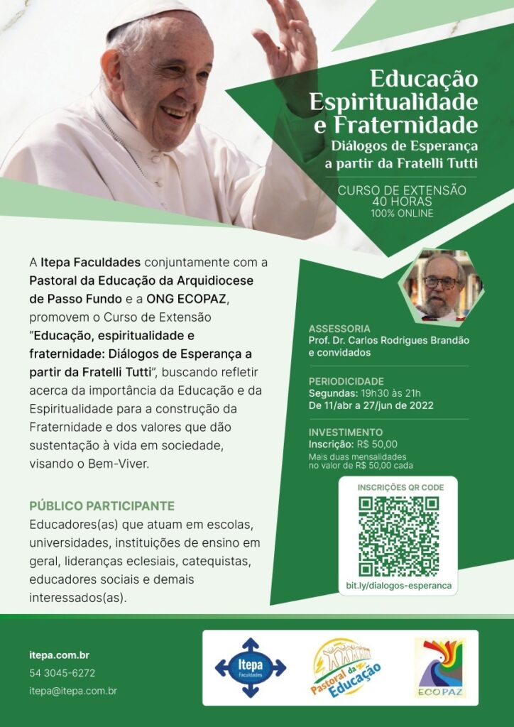 O curso, intitulado “Educação, Espiritualidade e Fraternidade”, deseja mobilizar educadores e lideranças eclesiais, especialmente as da Arquidiocese de Passo Fundo, oferecendo-lhes a oportunidade de estudos, diálogos, partilhas e reflexões sobre os sentidos mais profundos da Educação, tendo por fundamento e horizonte o Humanismo integral e Solidário proposto pela Igreja e apresentado na Campanha da Fraternidade 2022 e no Pacto Educativo Global.