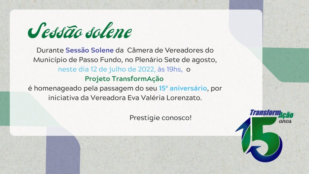 “Falar dos 15 anos do Projeto TransformAção é falar de algo muito querido e muito importante para nós, a partir da proposta da Campanha da Fraternidade pensávamos em encontrar ações envolvendo esta temática na Arquidiocese de Passo Fundo, então um grupo de religiosos de diversas congregações se reuniram para pensar maneiras de diminuir os impactos ambientais na região, muito fortes na época”, disse.