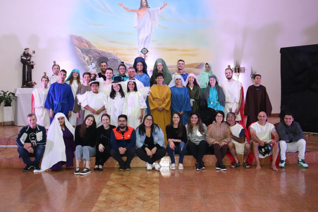 Após dois anos sem realizar a Encenação por conta da pandemia do coronavírus, neste ano foi possível retornar, e ainda com a união dos dois grupos de jovens presentes na Paróquia Santo Antônio, o CLJ e o ONDA, que ensaiaram por meses e estudaram muito a Bíblia, a fim de ser o mais fiel possível ao que a Palavra narra.
